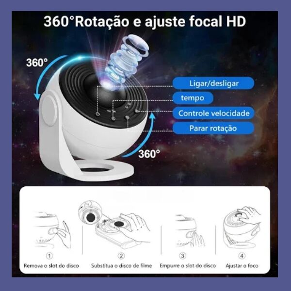 Luminária Projetor Universo Planetas Estrelas Lua Terra 13 Em 1 Com Bluetooth Som Controle Remoto