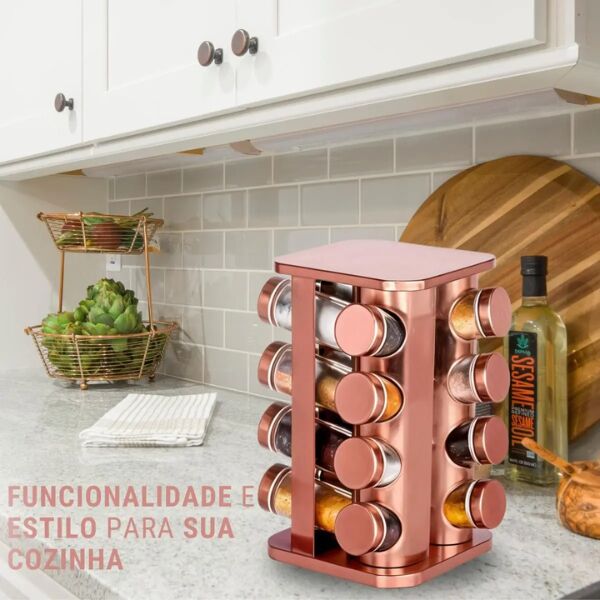Porta Tempero Giratório Inox 16 Potes Quadrado Rosé Gold – Dubai